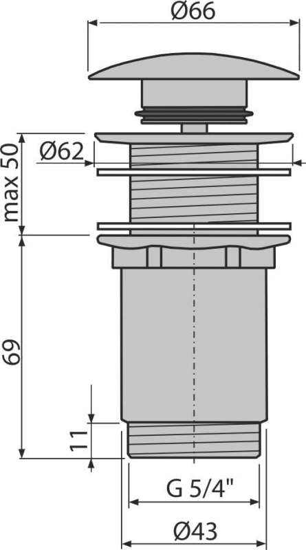 ALCADRAIN A395 Pileta umývadlová click/clack 5/4" celokovová, velká zátka pre plast.