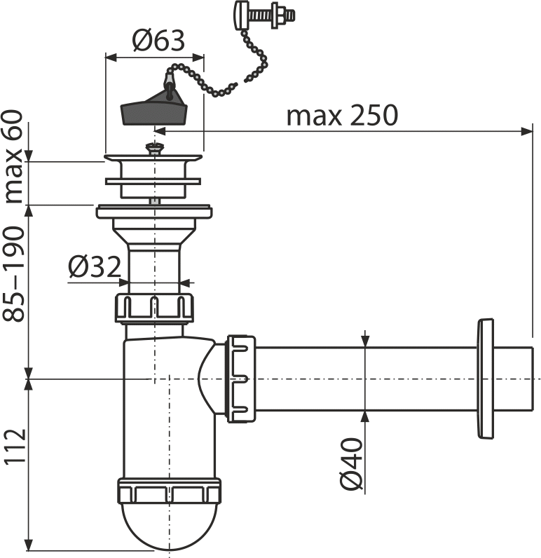 ALCADRAIN A42R Sifón umývadlový 40 s plastovou mriežkou 63, retiazka