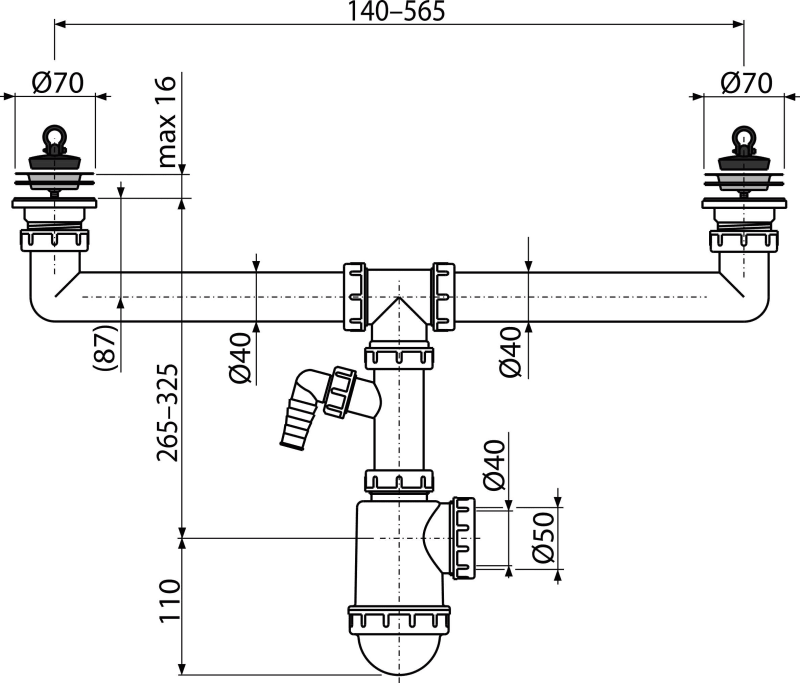 Zobraziť všetky novinkyALCADRAIN Sifón drezový dvojitý A449P s piletou a odbočkou