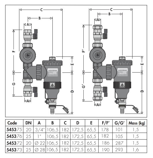 CALEFFI Magnetický filter s mechanickým filtrom 1", technopolymér - 545376157,05 EUR/ ks127,68 EUR bez DPH