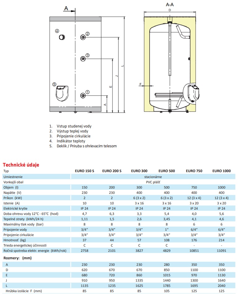| tepelné straty | 1,5 kWh/24hod |