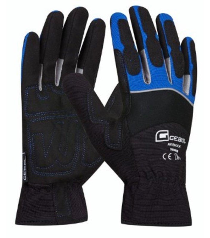 Pracovné rukavice Gebol Anti Shock, vysokokvalitnáprofesionálna kvalita s elastanom / syntetickou kožou a vinylom, vystužená a vystužená vnútorná ruka, tlmenie vibrácií s pružnými rukami, vysokýstupeňpohodlia pri opotrebovaní a vysokáodolnosťprotioderu.
