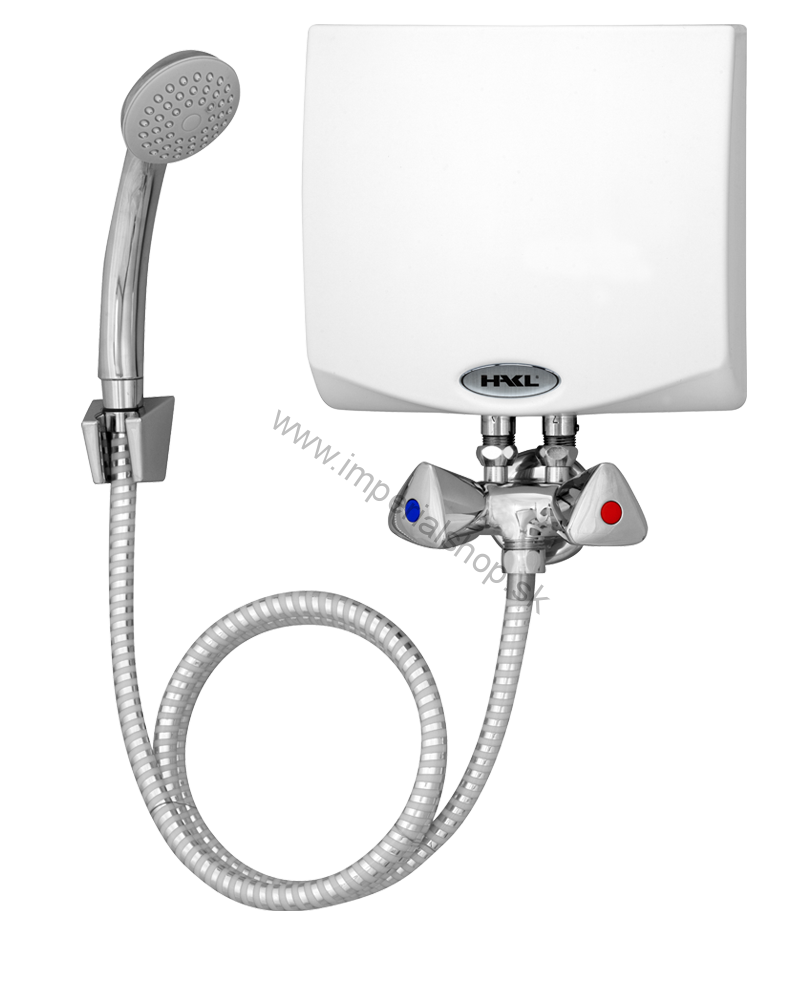 HAKL MK-1 elektrický prietokový ohrievač vody s elektronickým zopínaním na 230V v kombinácii s trojcestnou klasickou sprchovou batériou.