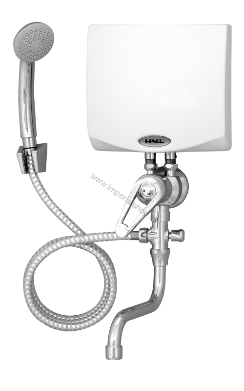 HAKL MK-2 elektrický prietokový ohrievač vody s elektronickým zopínaním na 400 V v kombinácii s trojcestnou pákovou kombinovanou batériou.
