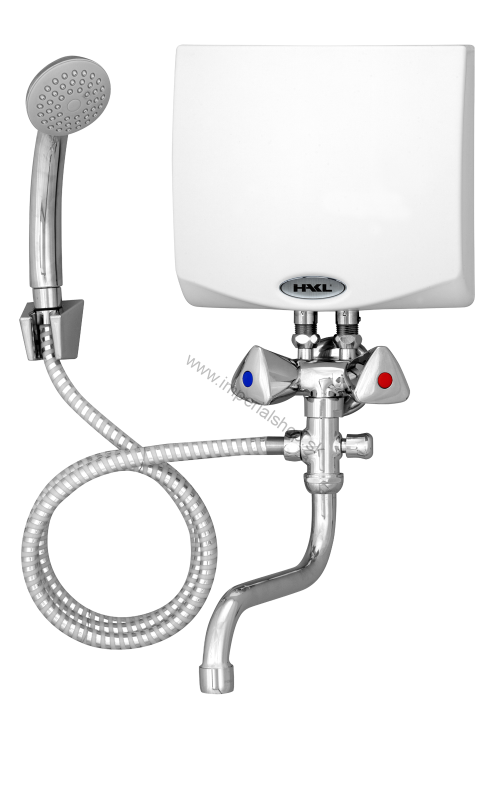 HAKL MK-2 elektrický prietokový ohrievač vody s elektronickým zopínaním na 400 V v kombinácii s trojcestnou klasickou kombinovanou batériou.