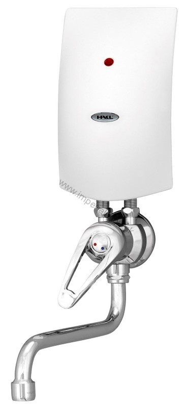 HAKL PM-B elektrický prietokový ohrievač vody s hydraulickým zopínaním na 230V v kombinácii s trojcestnou pákovou drezovou batériou.