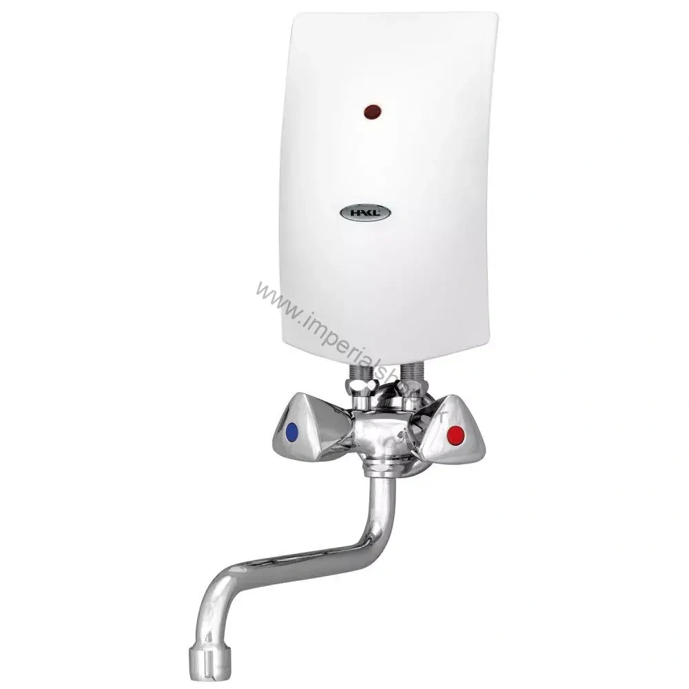 Pre jednoduchší nákup je el. prietokový ohrievač vody HAKL PM-B SET dodávaný spolu s vodovodnou beztlakovou nástennou klasickou batériou HAKL, s dĺžkou výtokového ramienka 20 cm.