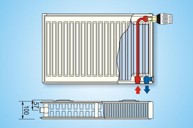 Radiátory so 6-bodovým pripojením s integrovanou ventilovou vložkou. Prednostne je ventilová garnitúra umiestnená na pravej strane a označuje sa VKP. Umožňuje pripojenie radiátora na spodnej strane. Konštrukčné riešenie garnitúry ale umožňuje aj klasické bočné pripojenie radiátora. Súčasťou radiátora sú bočné kryty a vrchná mriežka. Panely radiátorov KORAD sú vyrábané z oceľového plechu hrúbky 1,2 mm vzájomným zvarením dvoch výliskov po obvode švovým zvarom. Rozstup vertikálnych kanálikov na výliskoch panelov je 33,33 mm. Povrchová úprava sa vykonáva kontinuálnym spôsobom na výrobnej linke.
