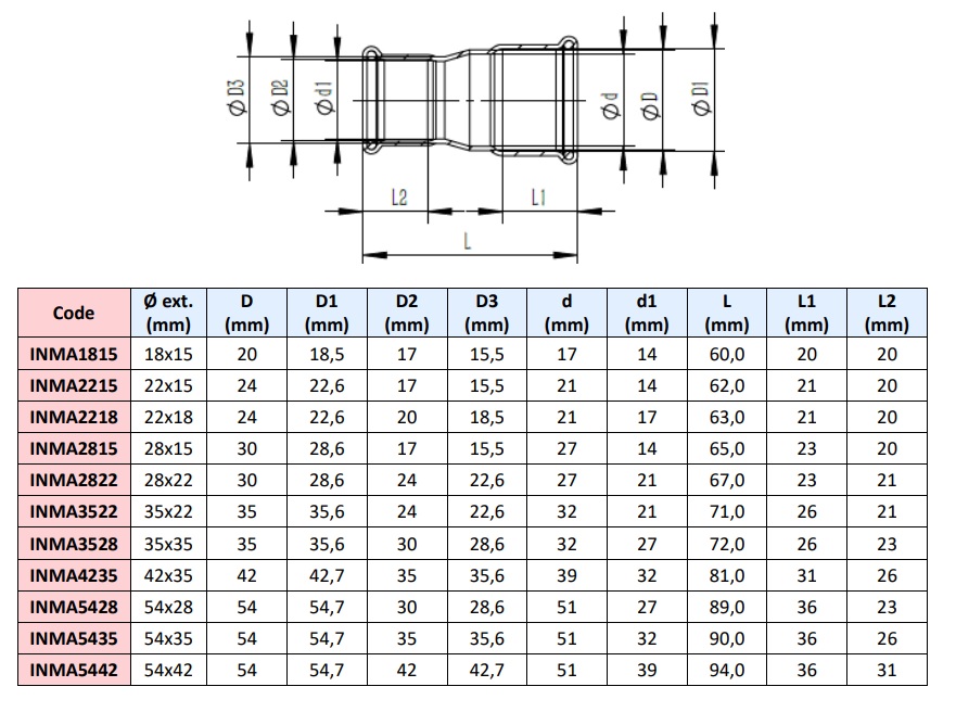 Lisovací NEREZ Nátrubok redukovaný 42x35 lisovaný profil M14,86 EUR/ ks12,08 EUR bez DPH