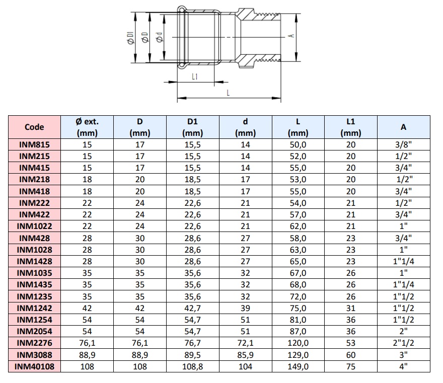 PBtub - INOX Lisovacia spojka s vonkajším G" závitom (typ spoja M)