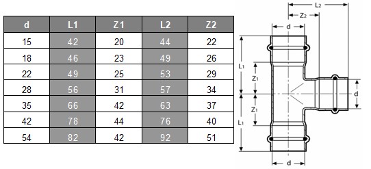 Lisovací t-kus s koncami z V profilu FRABOPRESS 316 SECURFRABO pre rúry z nehrdzavejúcej ocele AISI 316L (materiál 1.4401). Elastomérový tesniaci prvok EPDM vyhovuje norme EN681-1 a je vybavený bezpečnostným systémom SECURFRABO, ktorý umožňuje detekciu akejkoľvek netesnosti počas skúšok tesnosti.
