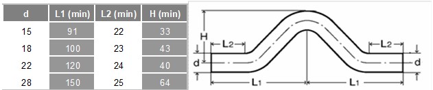 Lisovaci nadoblúk s koncami z V profilu FRABOPRESS 316 SECURFRABO pre rúry z nehrdzavejúcej ocele AISI 316L (materiál 1.4401). Elastomérový tesniaci prvok EPDM vyhovuje norme EN681-1 a je vybavený bezpečnostným systémom SECURFRABO, ktorý umožňuje detekciu akejkoľvek netesnosti počas skúšok tesnosti.