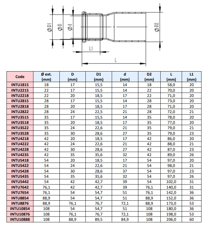 PBtub - INOX Lisovacia redukcia M/F ( typ spoje M )