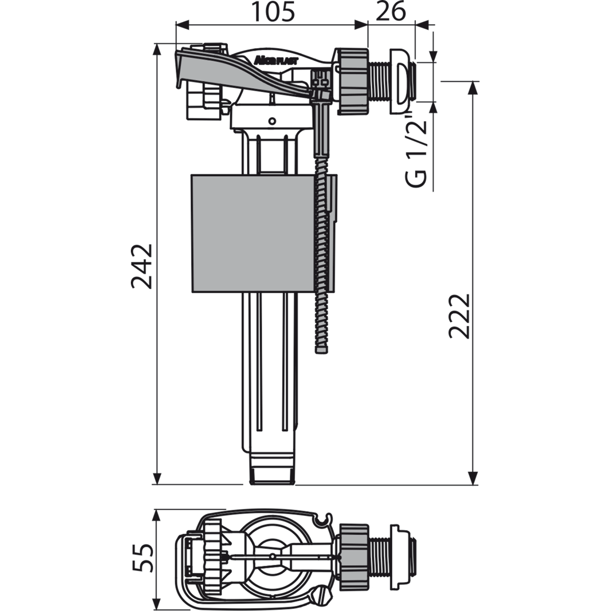 Napúšťací WC ventil bočný pre platové nádržky ALCAPLAST A150P 1/2"