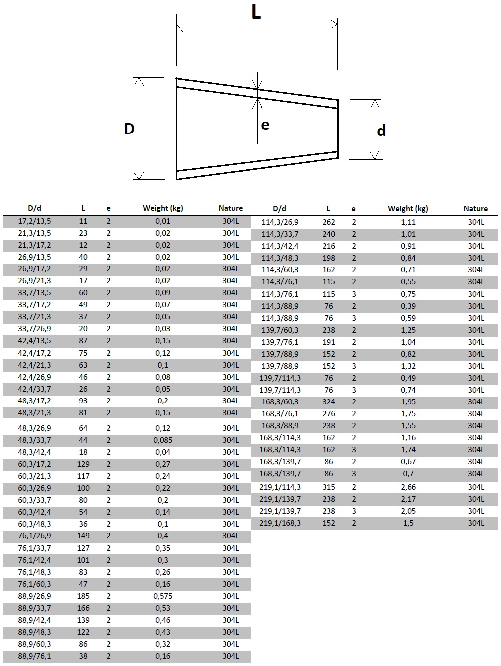 Nerezová redukcia navarovacia koncentrická EN 10253 33,7mm - 26,9mm3,97 EUR/ ks3,23 EUR bez DPH