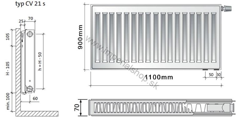 PURMO Radiátor CV21s 900/1100221,11 EUR/ ks179,76 EUR bez DPH