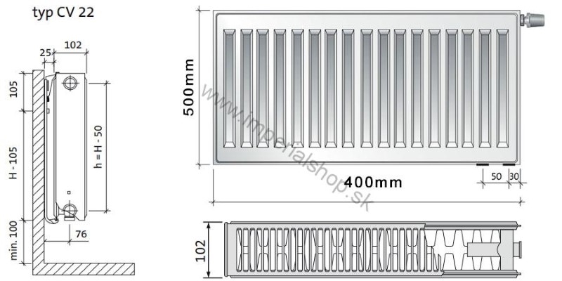 PURMO Radiátor CV22 500/400104,55 EUR/ ks85,00 EUR bez DPH
