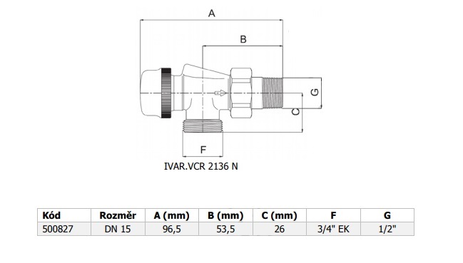 IVAR Termostatický ventil 1/2" x EK axiálny