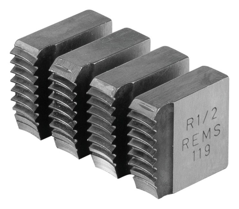 Osvedčené, nezničiteľné kvalitné závitorezné čeľuste REMS s optimálnou geometriou britu zaručujú super ľahké narezávanie, ľahké rezánie závitu a čistý závit.