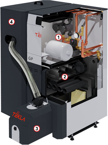 Draco Bio Compact FII GP je najnovší model kotlov na pelety TEKLA. Zariadenie sa vyznačuje moderným dizajnom, farbami a bohatou výbavou. Kompaktný dizajn a malé rozmery umožňujú inštaláciu aj v malých kotolniach. Model GP je štandardne vybavený čerpadlovou skupinou, ktorá obsahuje: čerpadlo vykurovacieho okruhu so zmiešavacím ventilom a ovládačom, čerpadlo TÚV, čerpadlo ochrany spiatočky, 8 l expanzná nádoba a bezpečnostný ventil. Kotol je možné podľa platných noriem pripojiť priamo na vykurovací systém v otvorenom aj uzavretom systéme. Draco Bio Compact GP je vybavený samočistiacim automatickým horákom FIREBLAST a jeho činnosť je riadená moderným regulátorom ESTYMA TOUCH s farebnou dotykovou LCD obrazovkou.