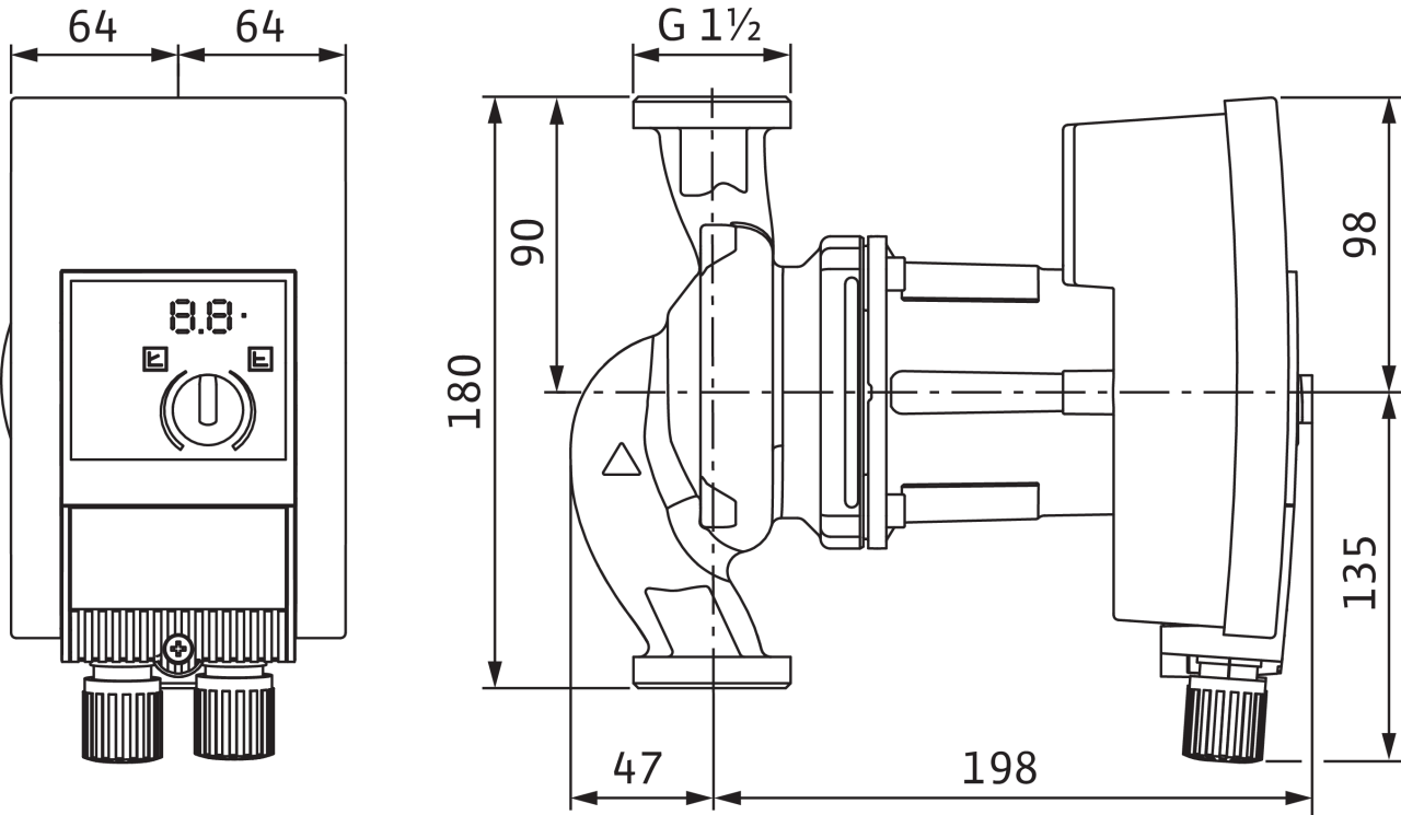 Mokrobežné obehové čerpadlo so závitovým alebo prírubovým pripojením, motorom EC a automatickým prispôsobením výkonu.